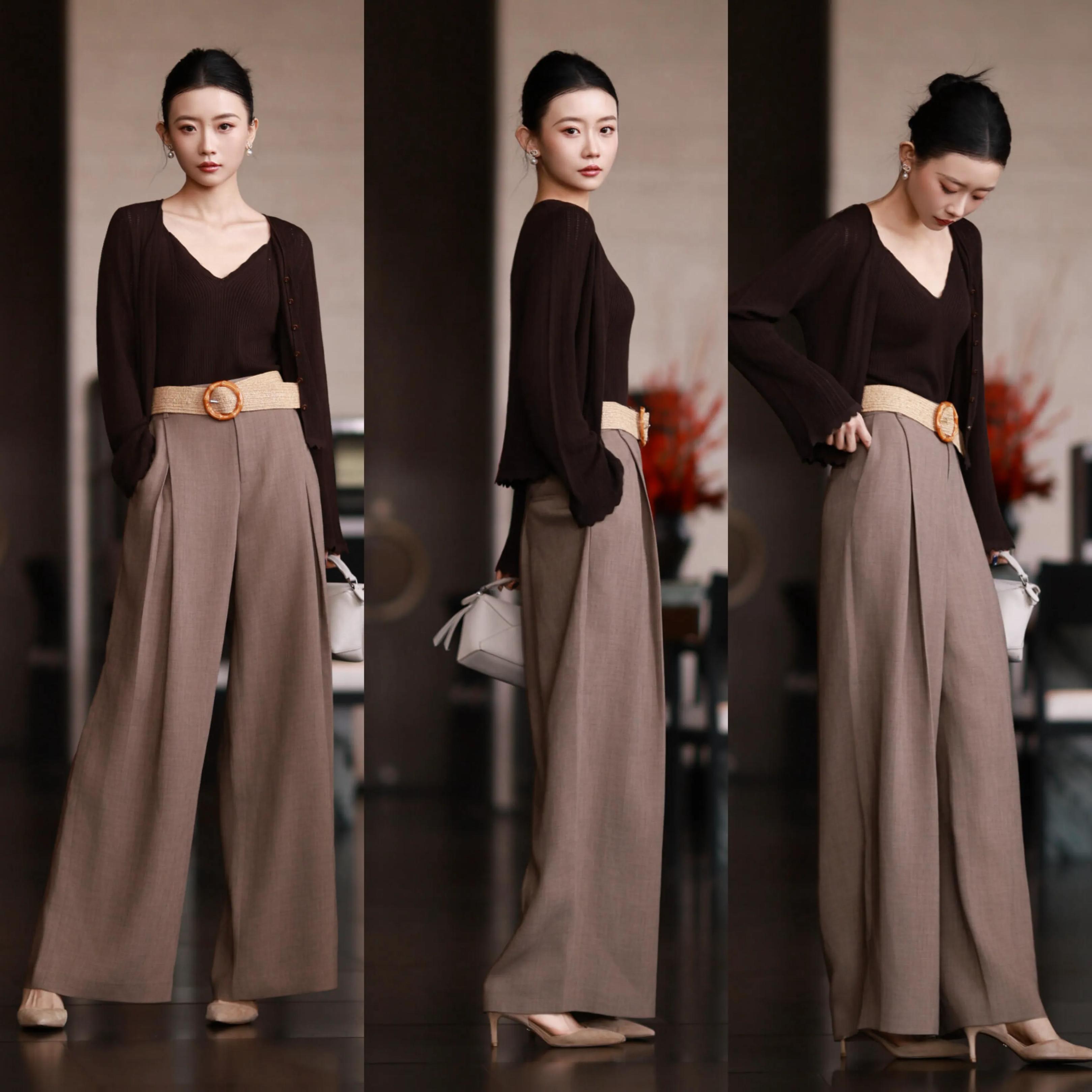 在职场打拼的你,想让自己的穿搭更显灵动有高级感,可选一条燕麦色的西装阔腿裤,穿在身上可遮住胯宽腿粗的问题,让你拥有流畅的腿部线条。脚上穿着一双大地色系的浅口高跟鞋就够,还能让你拥有大长腿。