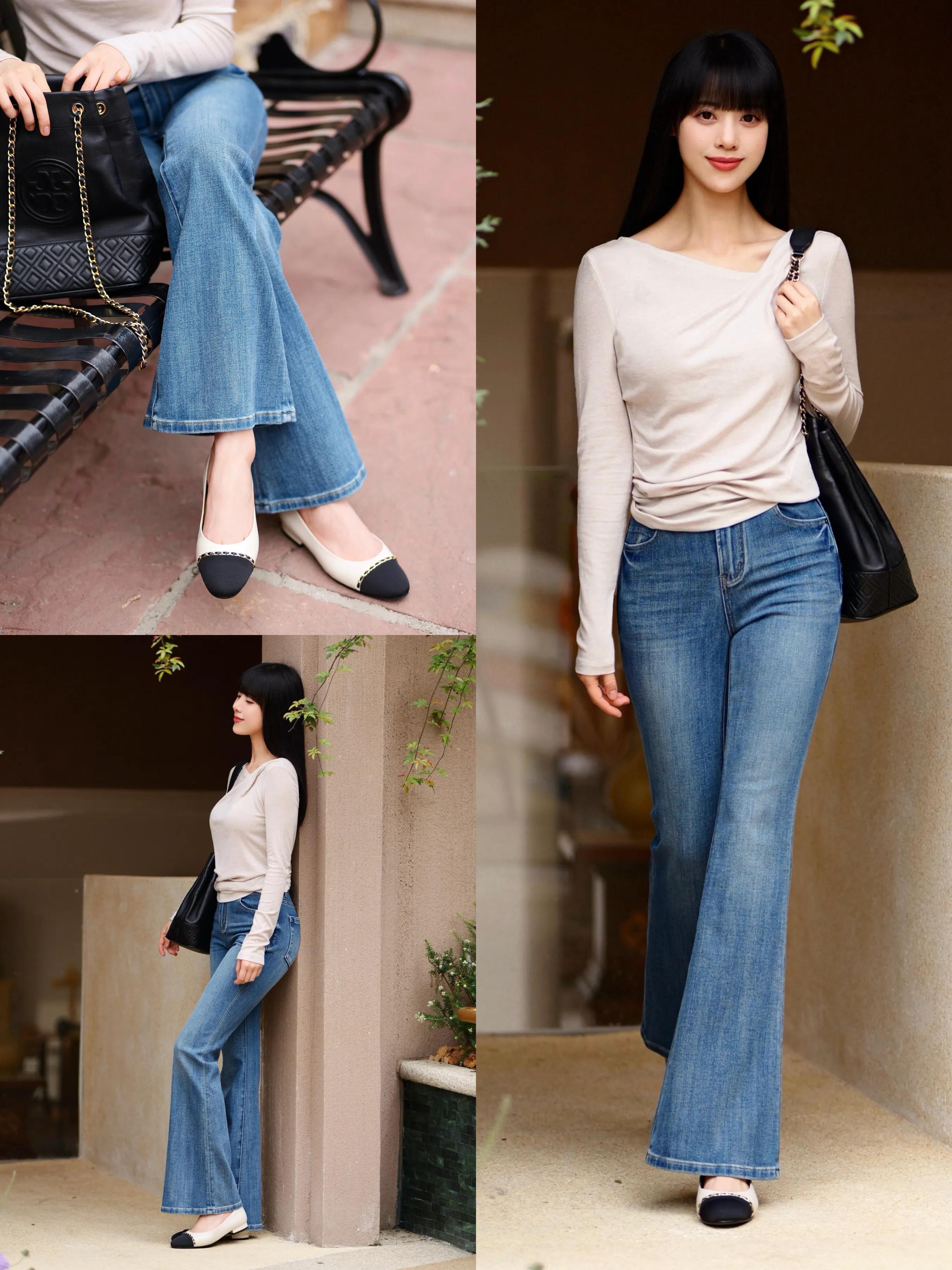 Tips③:牛仔阔腿裤+黑色高跟鞋