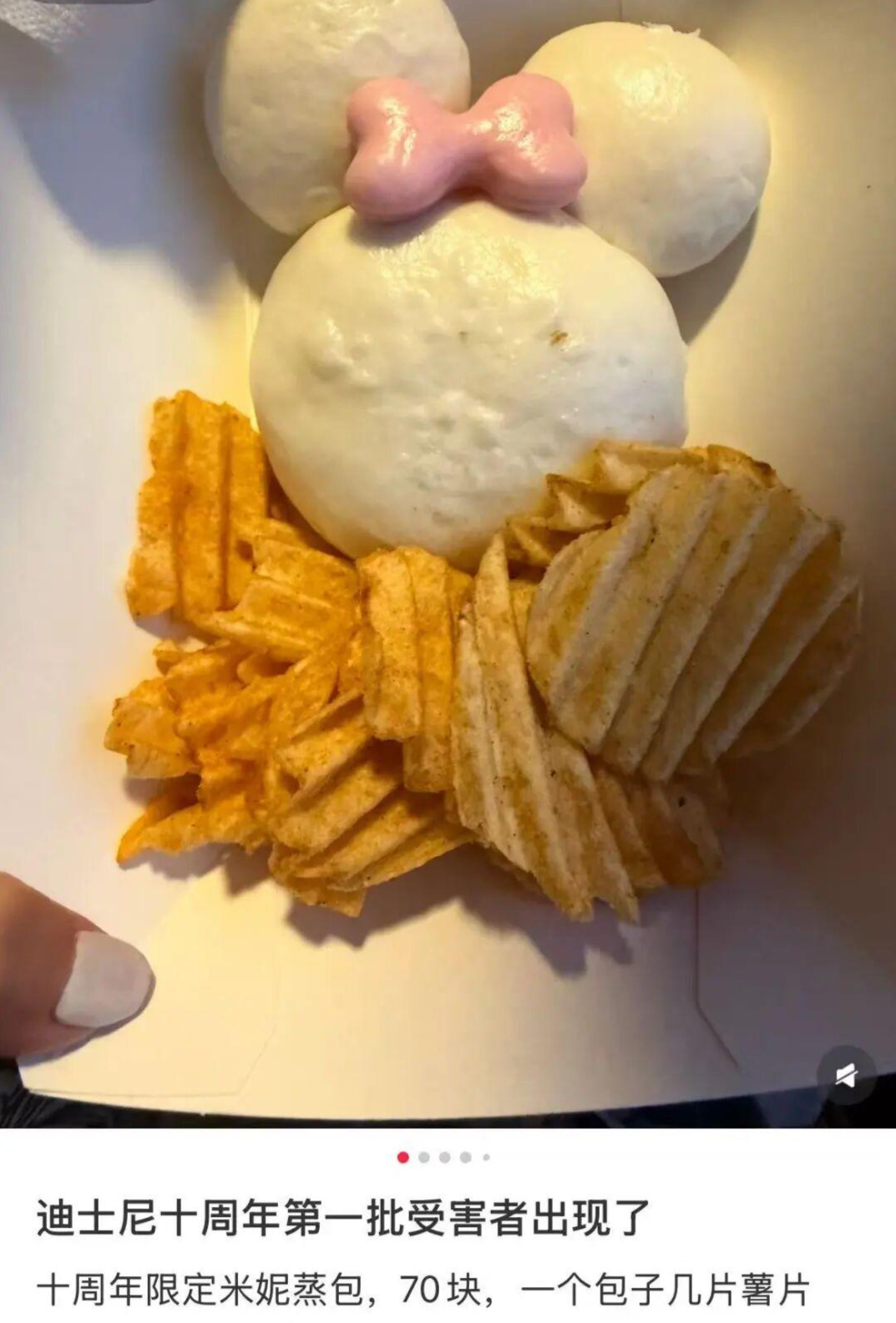 据封面新闻报道,近日,有网友晒出在上海迪士尼消费的70元套餐,是一个米妮造型的蒸包搭配薯片,引发不少网友吐槽“物价离谱”,质疑这包子是“镶金边了吗”,并戏称“吃一个气饱好几天”。据悉,争议套餐为十周年限定“米妮蒸包”,实物为3个无馅白面馒头搭配数片袋装薯片。此外,还有网友晒出188元的棉花糖、45元的冰棍、85元的火鸡腿……