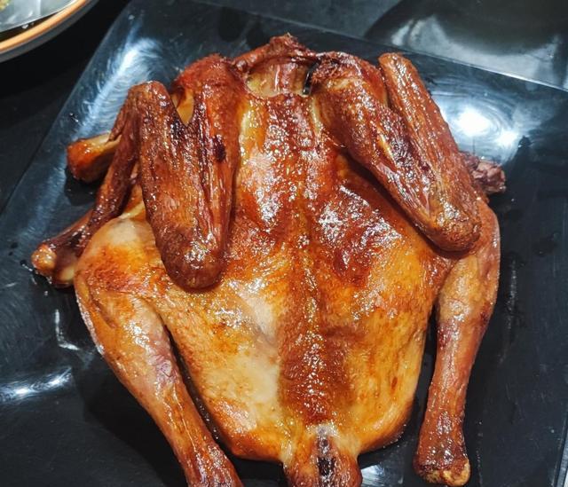 4. 取出烤好的鸡,撒上迷迭香即可。